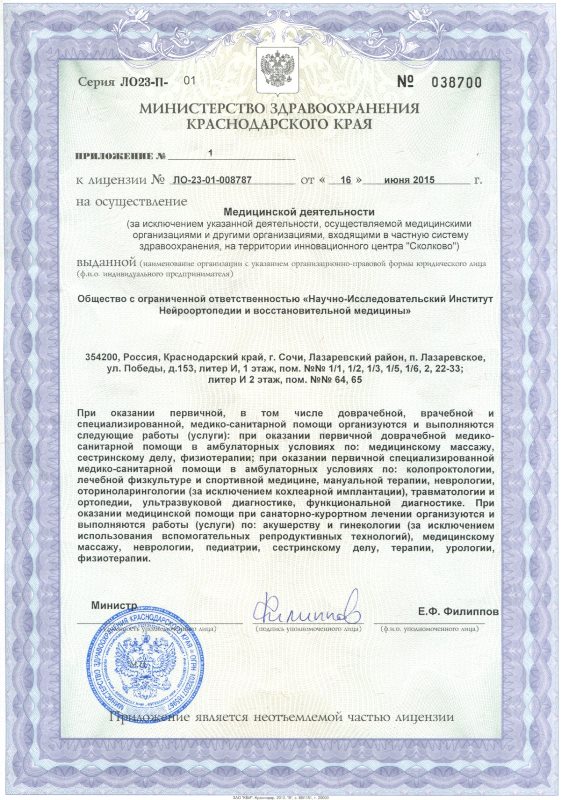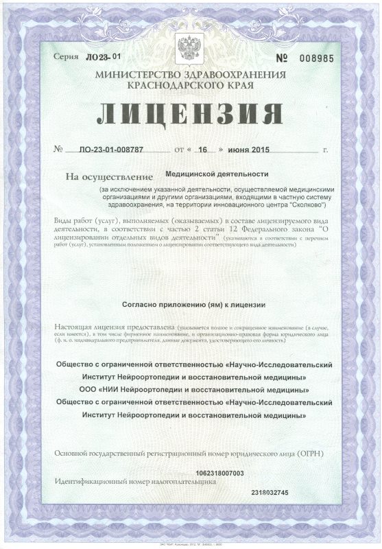 Поликлиническое отделение НИИ нейроортопедии и восстановительной медицины является медицинским учреждением, специализирующимся на лечении позвоночника и суставов, реабилитации после травм и операций, коррекции осанки, лечении плоскостопия и прочих заболеваний опорно-двигательного аппарата.